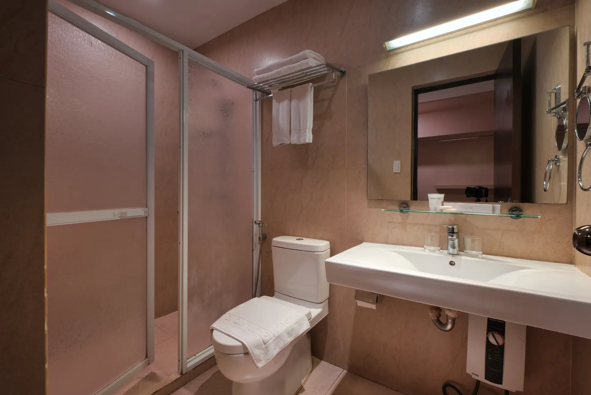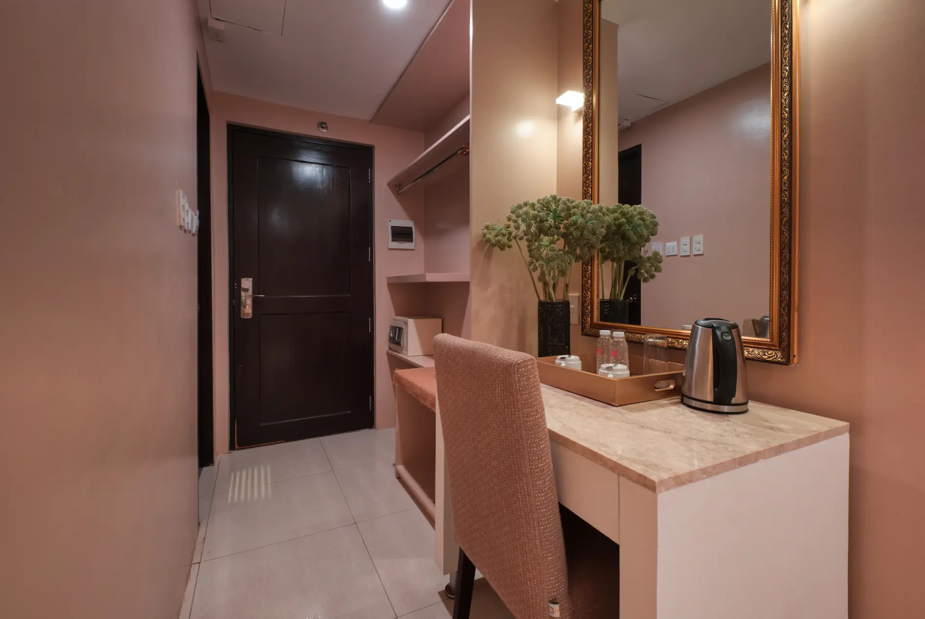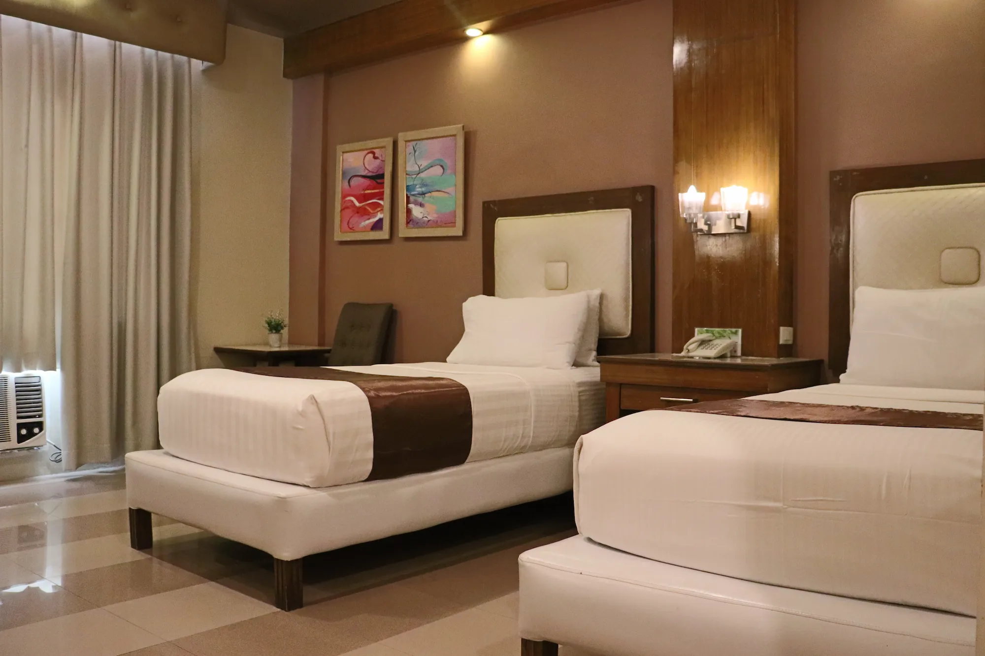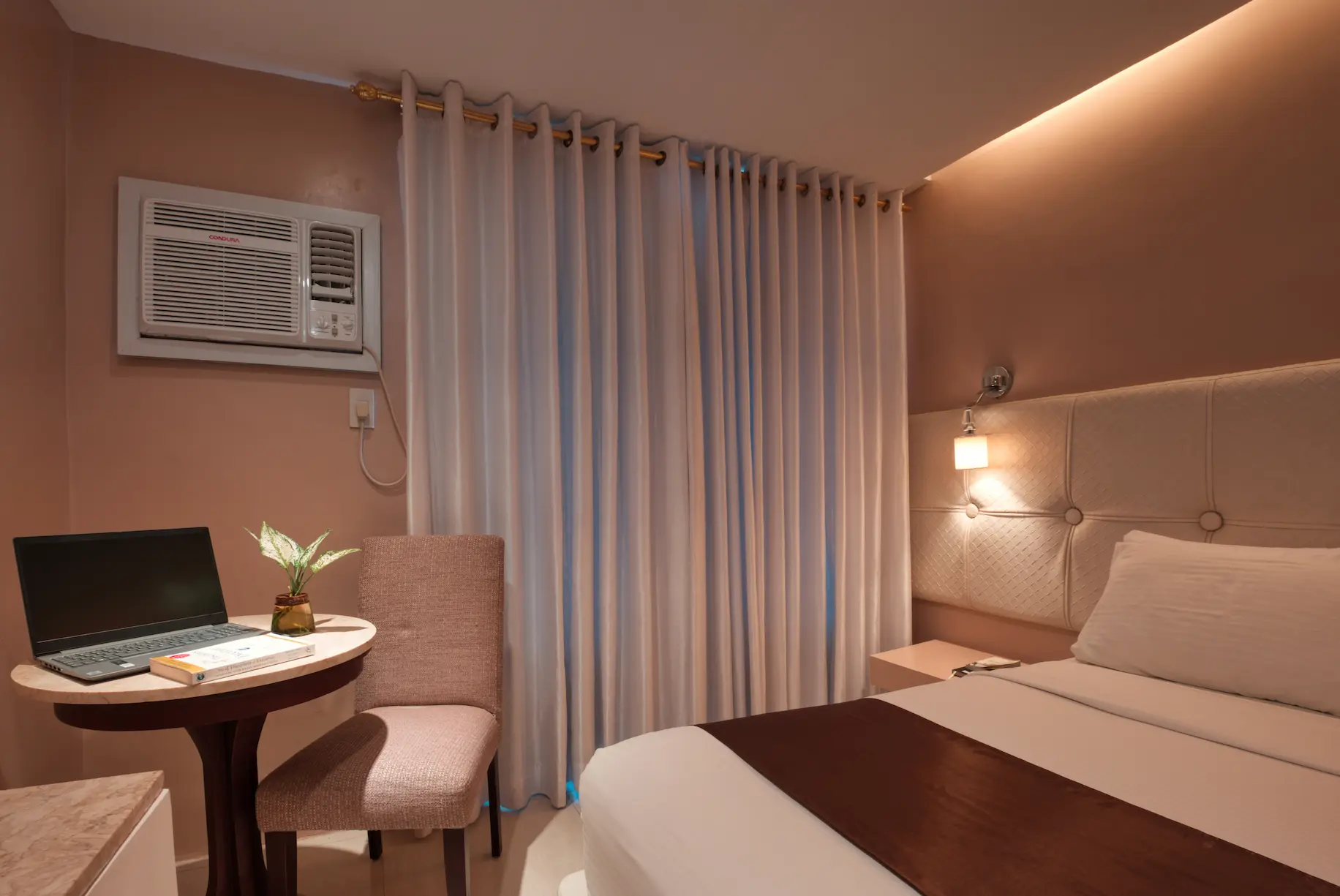 Amenities: Electronic Key Card, Individual AC system, Wi-Fi access, Smart TV, Personal Fridge, Private, Toilet and Bath with Amenities, Hot and Cold Shower, In-room Safe, Complimentary Bottled Water, Complimentary Breakfast, Coffee Making Facility, Access to Roof-Deck Pool